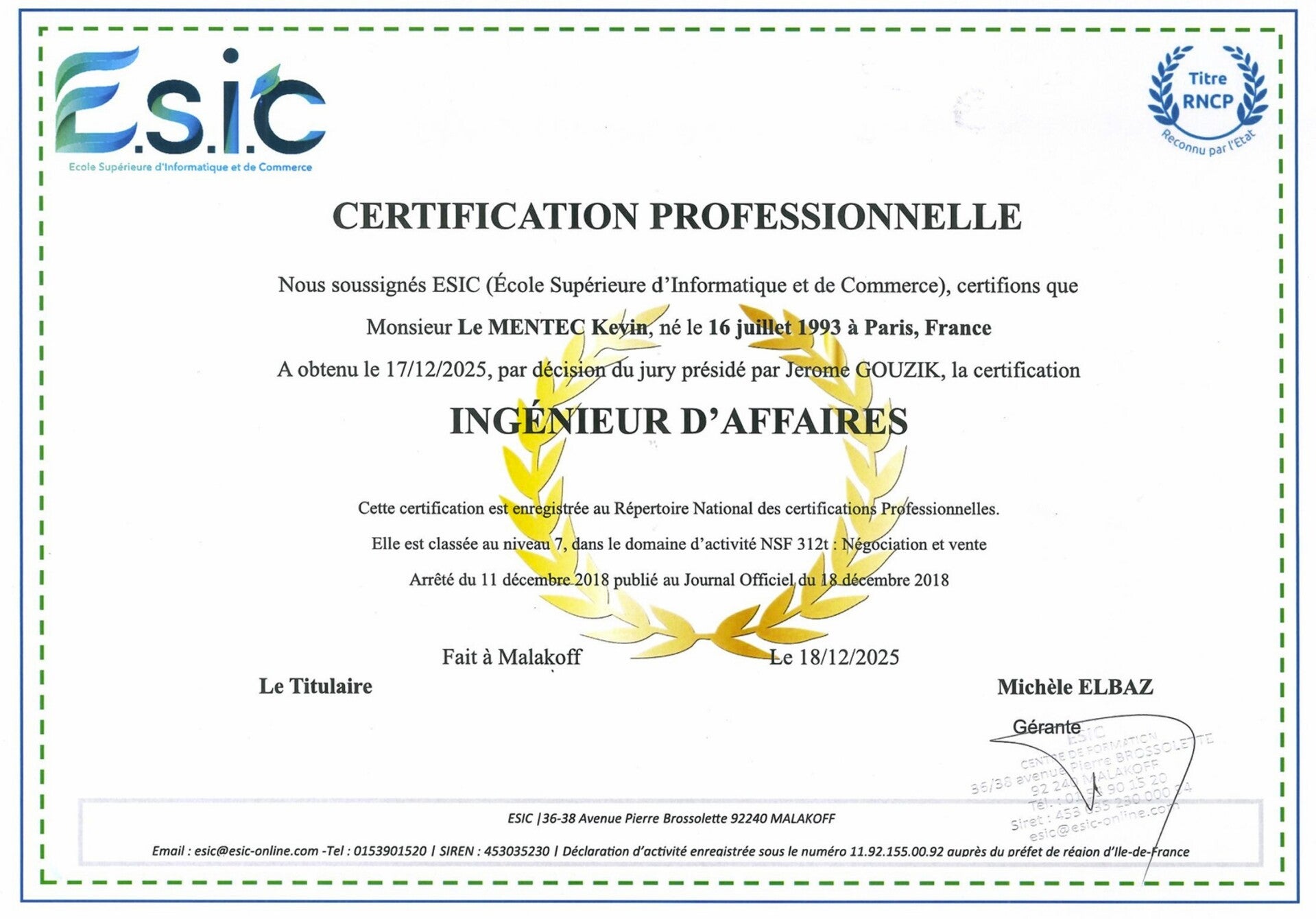 Mon Master Ingénieur d'Affaires m'a doté d'une double compétence précieuse : une maîtrise technique, une compréhension aiguisée des stratégies commerciales et une capacité à manager une équipe commerciale. Cette formation de haut niveau me permet d'identifier précisément les besoins, de concevoir des solutions innovantes et de les mettre en œuvre avec succès.